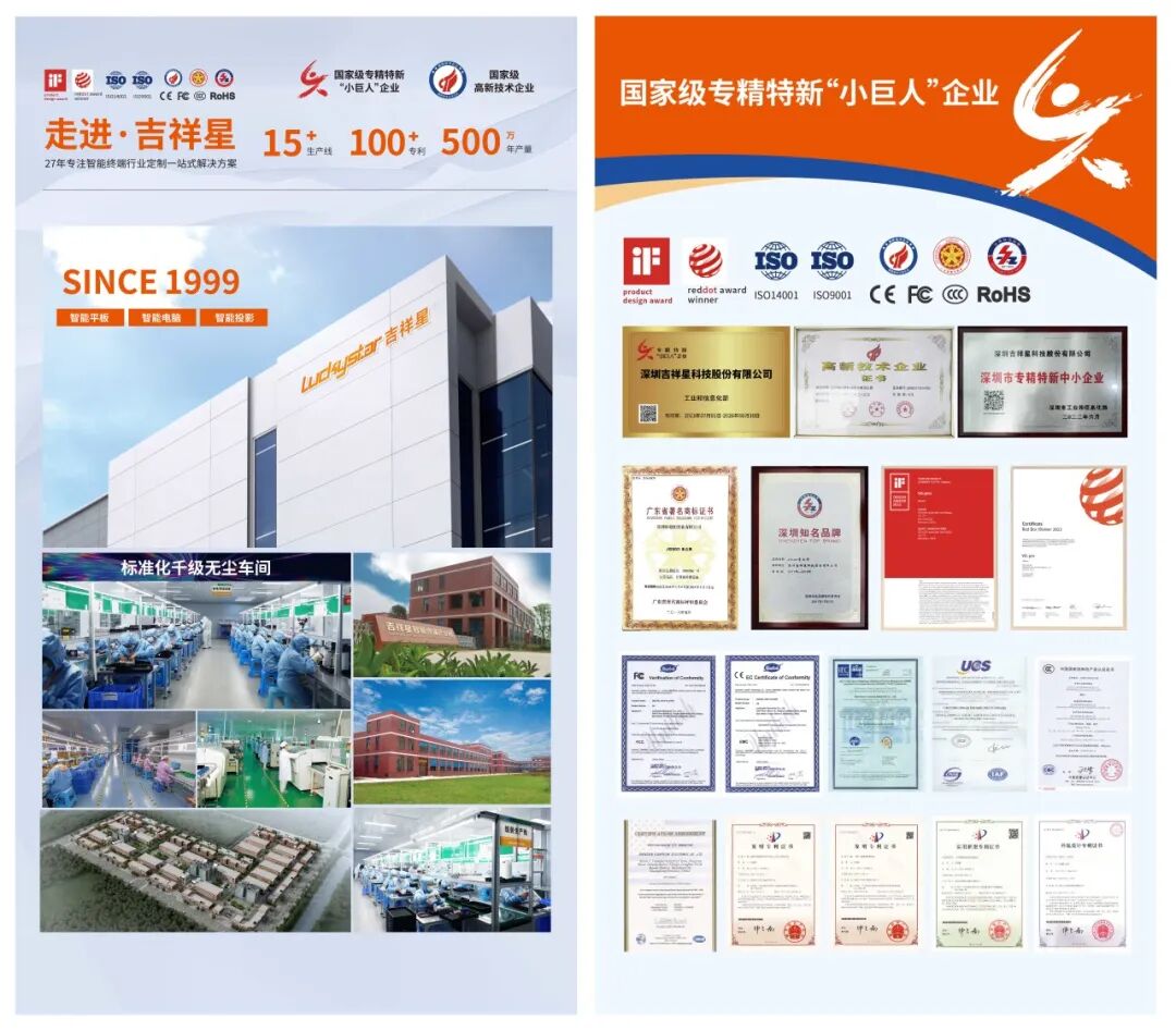 展台旁,吉祥星科技的技术与商务团队全程在岗,为全球采购商细致讲解产品优势、生产工艺及定制方案,可灵活提供OEM/ODM定制服务,快速响应各类个性化需求。本次广交会现场还通过吉祥星科技10万㎡智能终端产业园实景展示,直观呈现企业自主研发实力、千级无尘车间、高速SMT生产线等智造水准,其“设计-研发-生产”全流程OEM/ODM服务已覆盖全球60多个国家和地区。同时,公司以质量为核心,通过ISO9001、ISO14001、RoHS等多项权威认证,全流程精准把控产品品质,为国际客户合作筑牢底气。