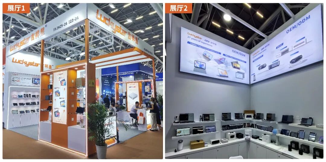 本届广交会期间,吉祥星科技展台人气持续高涨,成为智能终端展区的热门打卡点。展台设计简洁大气,重点陈列了智能平板、智能笔记本电脑、智能投影仪、便携式显示屏、MINI PC、智能日历机等核心产品,从外观的轻薄简约设计,到内在的性能配置优化,每一处细节都彰显着企业的匠心与创新理念,为更好地展示企业实力、服务全球客商,本次广交会吉祥星科技还设置了两处展示厅。